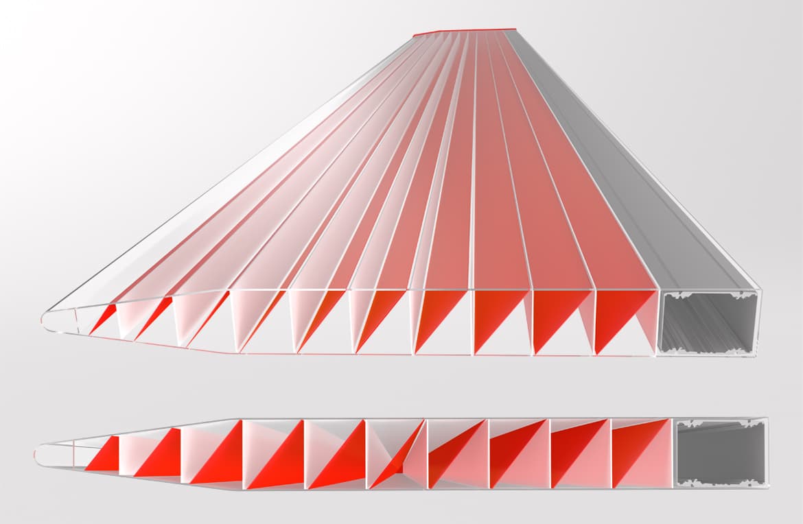 Mikroćelijska struktura lamela omogućuje ravnomjernu raspodjelu svjetla bez oštrih sjena i refleksija, čime se poboljšava vizualni komfor korisnika prostora i smanjuje potreba za umjetnom rasvjetom tijekom dana.